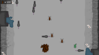 The ants are constantly running. Collect leaves along the way to increase their numbers, but be careful of hazards to avoid taking casualties from your ants.